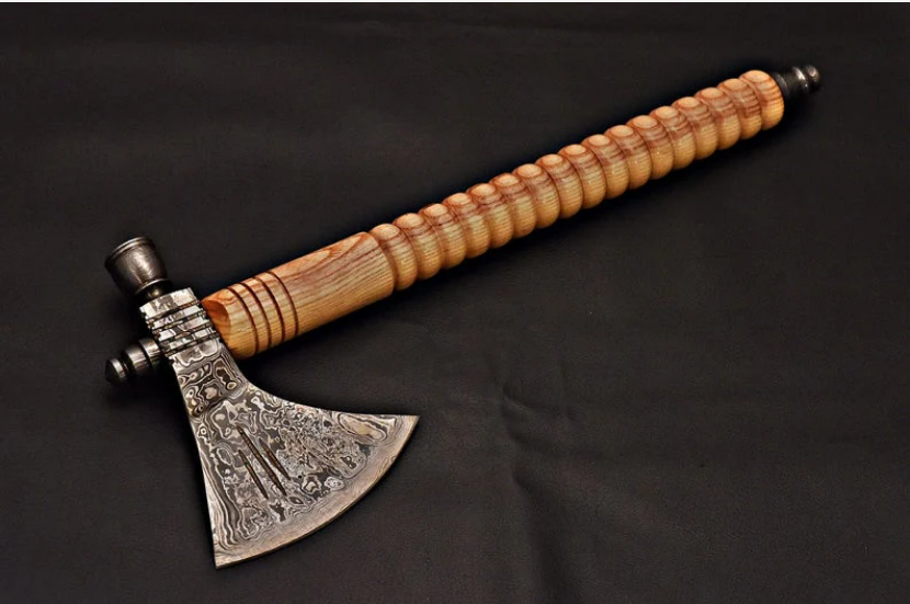 Axes HANDMADE DAMASCUS STEEL TOMAHAWK AXE HATCHET WOOD HANDLE. OVERALL IS 17” INCH LENGTH (aprox), HEAD CUTTING BLADE SIDE : 4.5″INCH (aprox) , HEAD LENGTH 5.75’’ INCH (aprox), 130,00 $