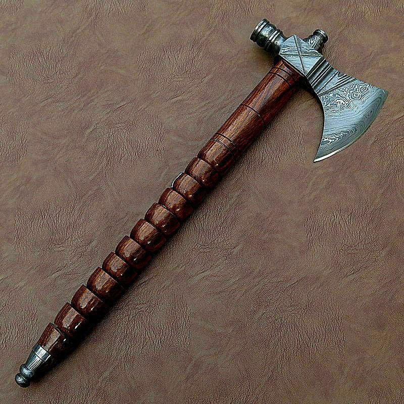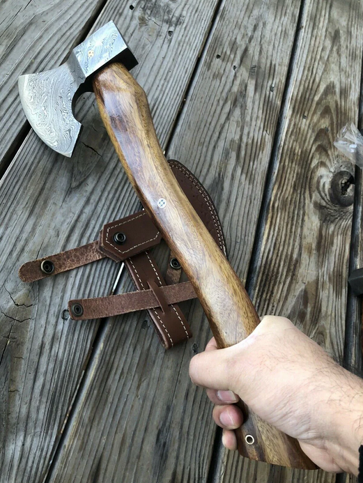 Axes Amazing blades Handmade Damascus 10 inches Axe Rose Wood Handle With Sheath Total length = 10″ Approximately Sharpe Blade length = 5″ Approximately Blade width = 3.5″ Approximately Handle material =Rose Wood Handle Blade Material = Damascus Forged Steel Sharpness will be 100% 120,00 $