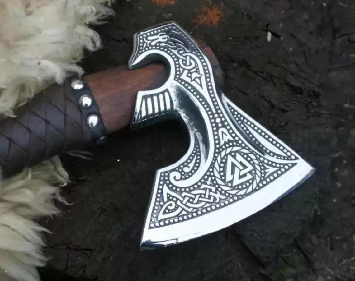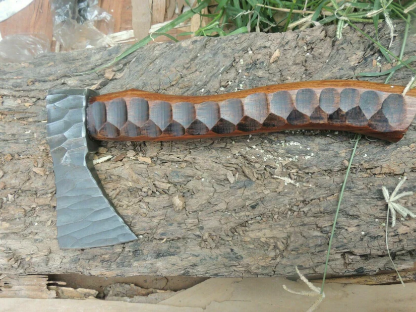 Amazing blades Handmade Damascus 10 inches Axe Rose Wood Handle With Sheath