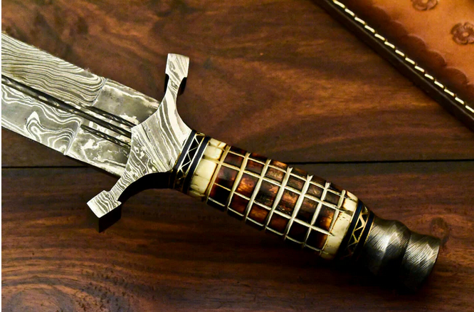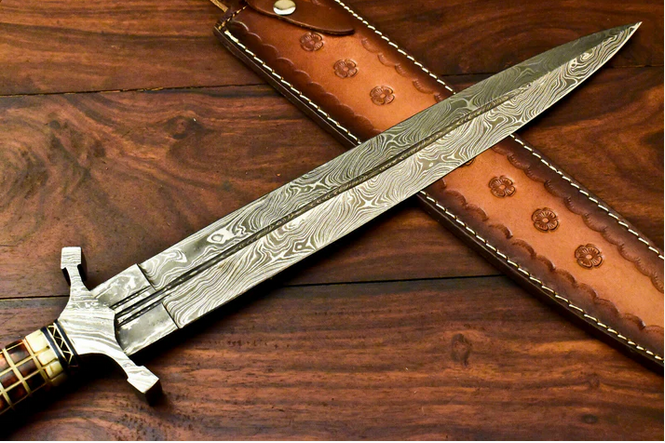 Custom Handmade Damascus Sword Dagger Double Edge Knife