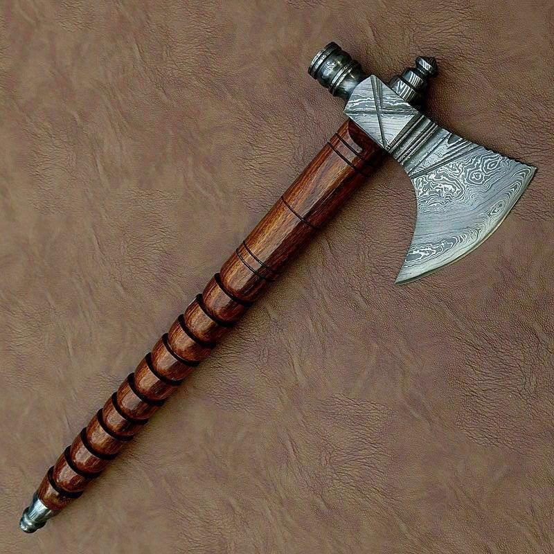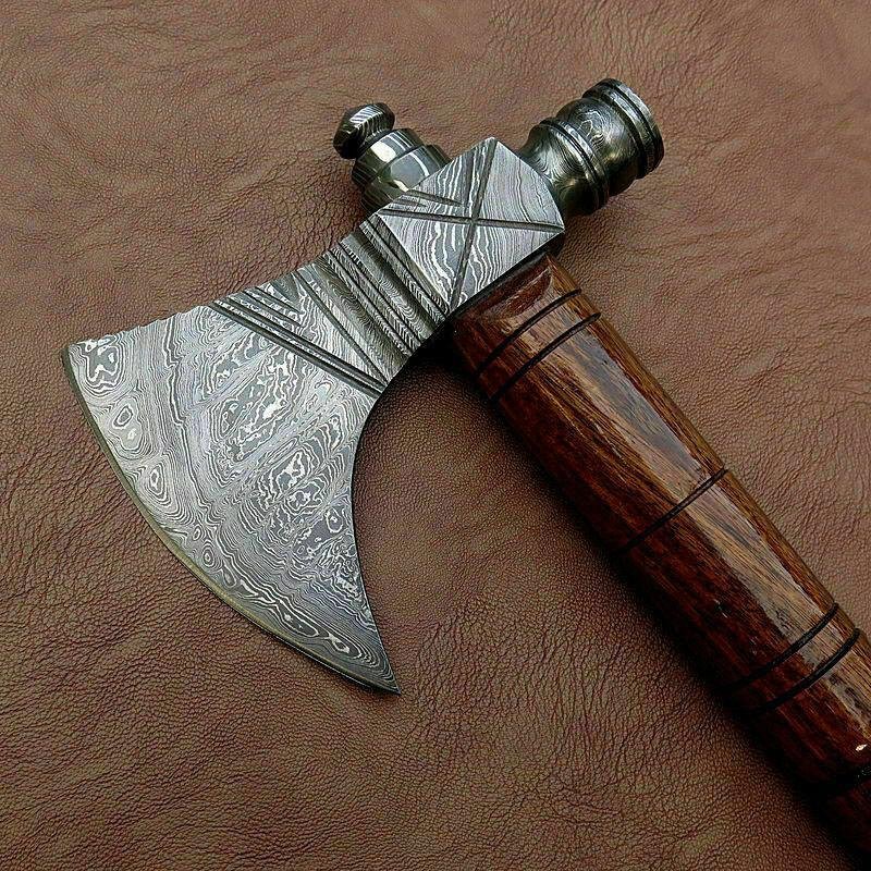 HANDMADE DAMASCUS STEEL TOMAHAWK AXE HATCHET WOOD HANDLE.
