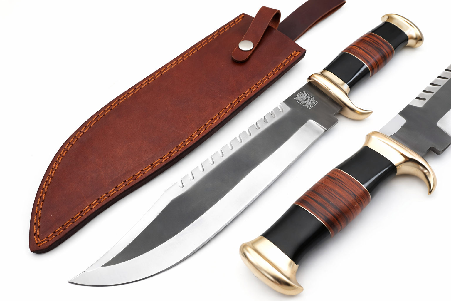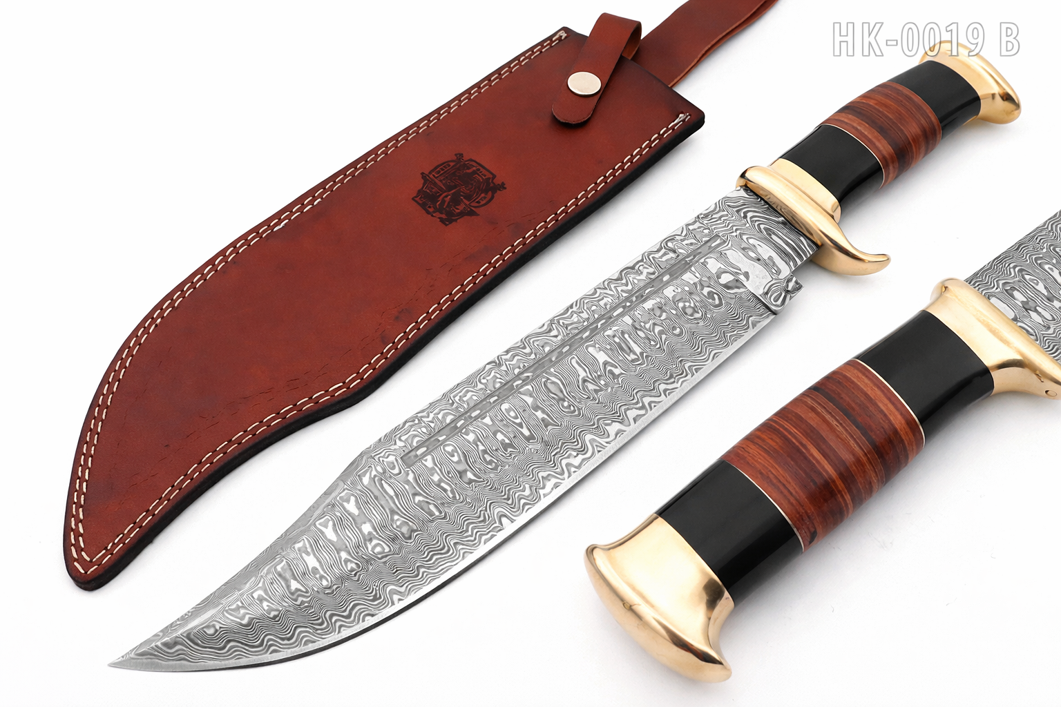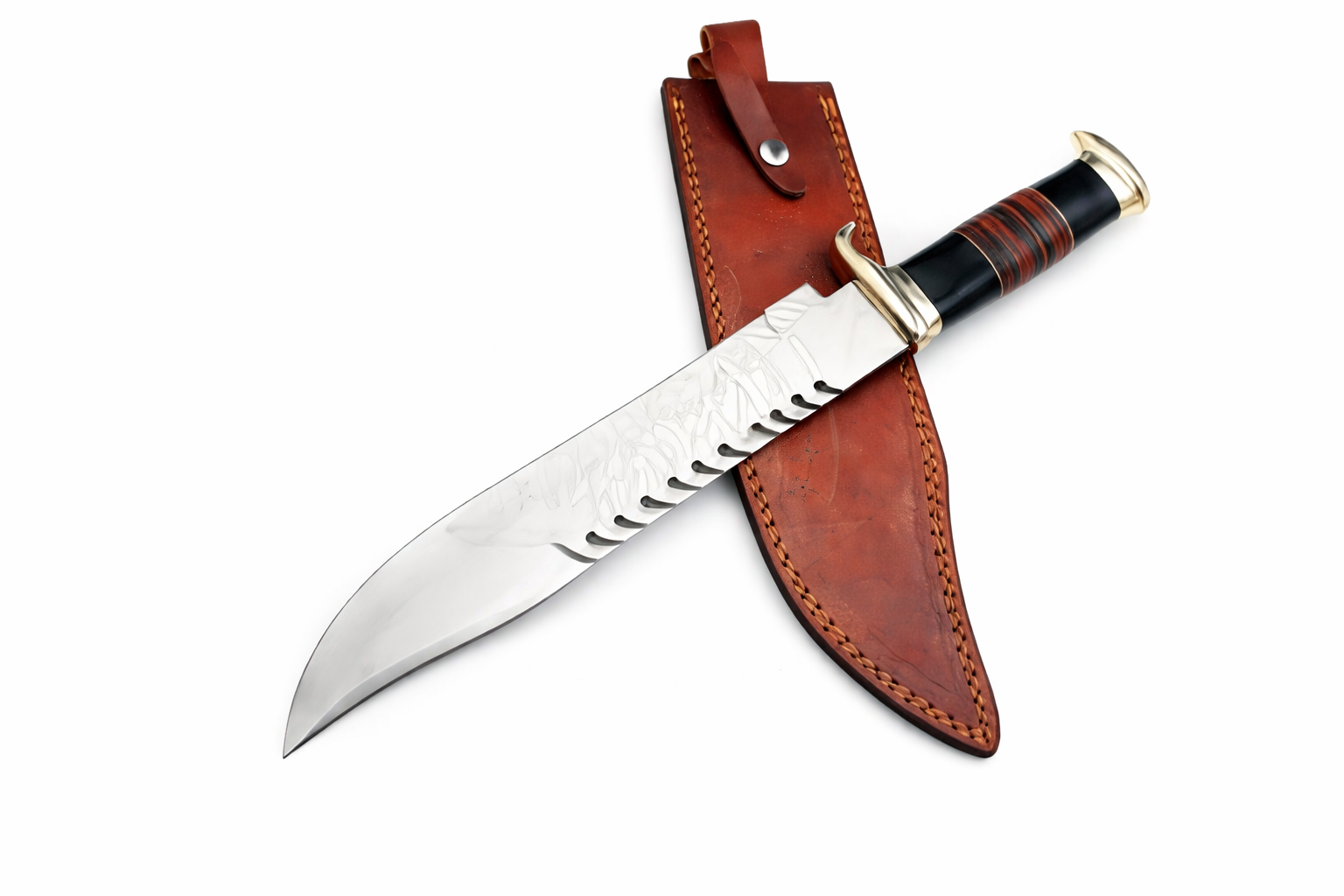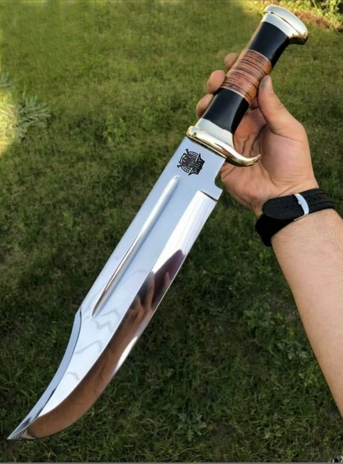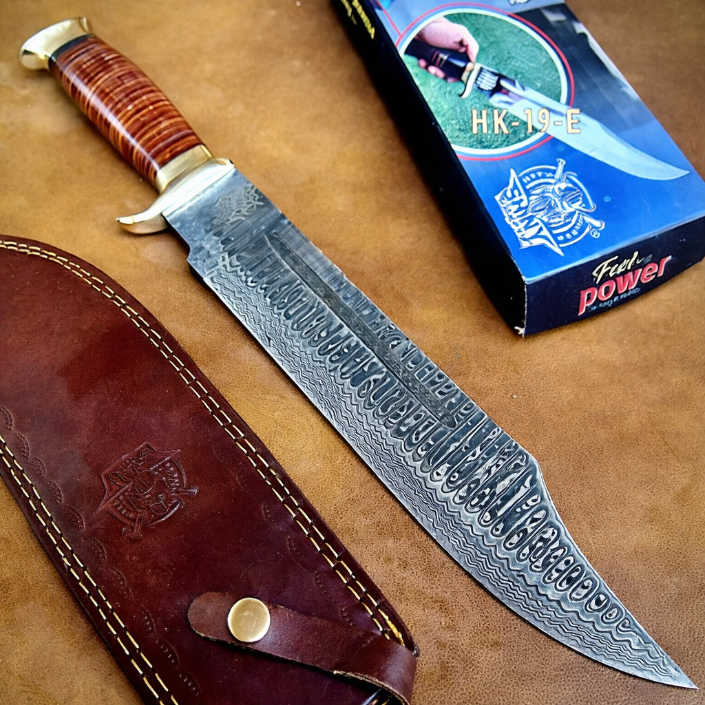 Overall Length:    24.0″ (Approx.) Blade Length:       18.0″ (Approx.) Handle Length:    6.0″ (Approx.) Handle Material:   Leather Roll Handle Bolster:   Double Damascus steel   Pattern:  none  Blade Material:     D2 steel